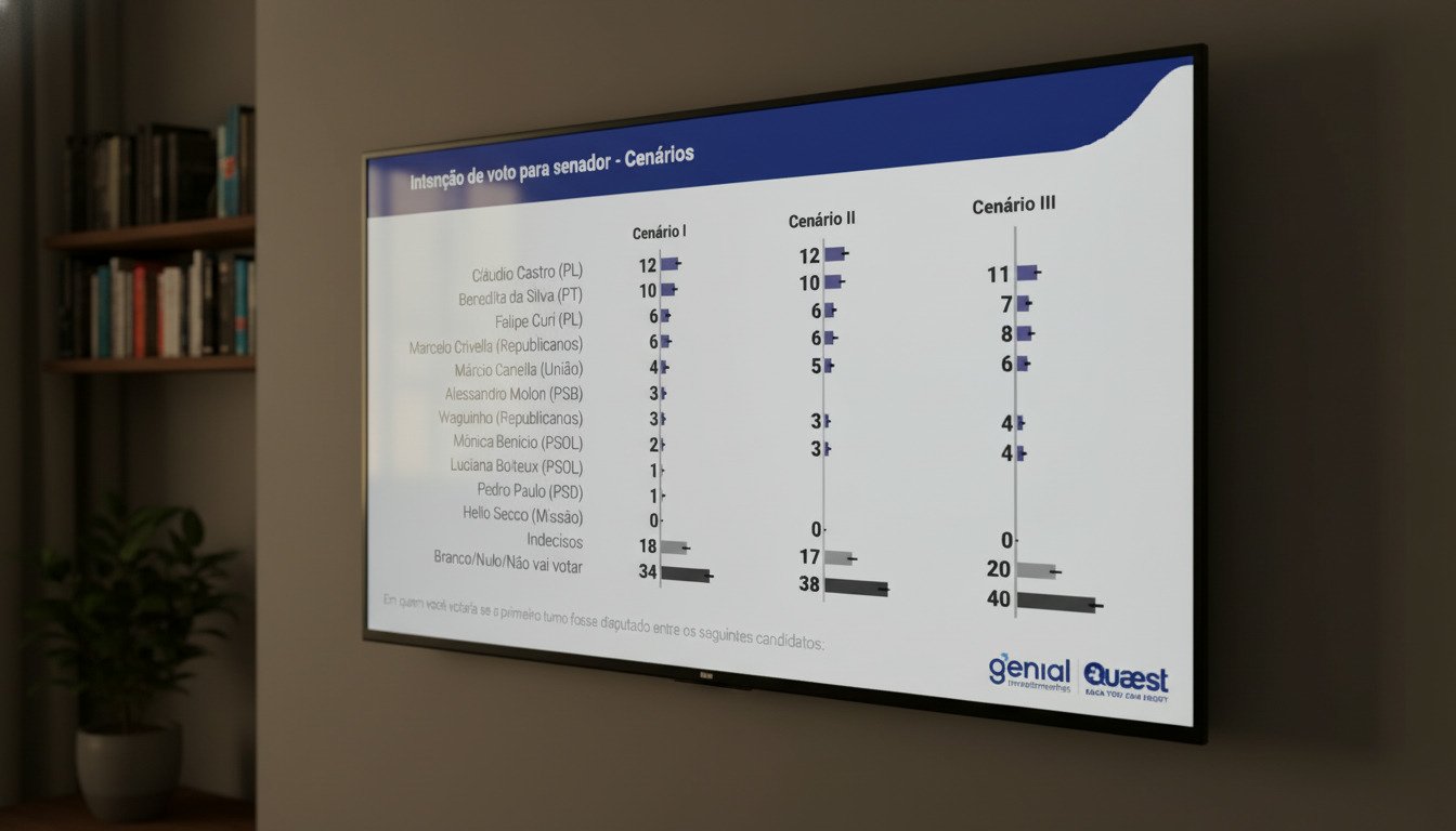Nos dois primeiros cenários analisados pela pesquisa, Cláudio Castro aparece numericamente à frente com 12% das intenções de voto. Logo em seguida, Benedita da Silva registra 10%, configurando um empate dentro da margem de erro. Outros nomes como Felipe Curi (PL) e Marcelo Crivella (Republicanos) também aparecem com 6% cada, mantendo a disputa aberta.