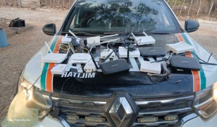 O empenho da Polícia Militar do Ceará (PMCE) em combater organizações criminosas resultou, nessa quinta-feira (18), na apreensão de um adolescente, de 16 anos, no município de Graça, suspeito de ato infracional análogo ao crime de extorsão contra um provedor de internet. Na ação, 29 roteadores, carregadores e conectores de fibra óptica também foram apreendidos.