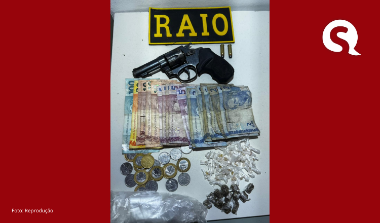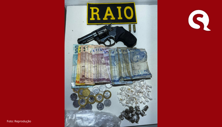 No local, foi constatado que o imóvel estava desabitado. Durante a vistoria no interior da residência, os policiais localizaram um revólver calibre .32, 14 gramas de maconha, seis gramas de crack, a quantia de R$ 240,00 em espécie e um saco contendo diversos sacos plásticos do tipo “dindim”, comumente utilizados para embalar entorpecentes.