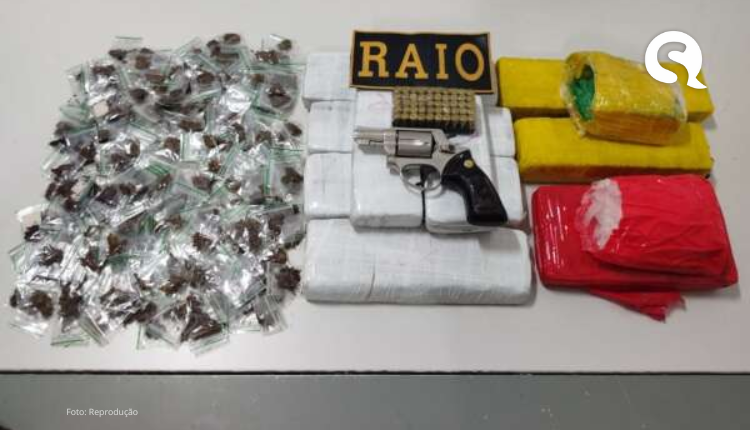 A ação ocorreu após a equipe do Comando de Policiamento de Rondas de Ações Intensivas e Ostensivas (CPRAIO) receber informações de que um casal teria chegado a uma casa abandonada, localizada na Travessa Pimentel Gomes, carregando uma mochila e, em seguida, deixado o local sem o objeto. Diante da suspeita, os policiais foram até o endereço informado e encontraram um imóvel aparentemente em reforma e vazio. Durante as buscas, a equipe localizou uma mochila no último cômodo da residência, contendo o seguinte material: um revólver calibre .38; 50 munições calibre .380 (intactas); 232g de crack; 1.380kg de cocaína e 5.779kg de maconha.