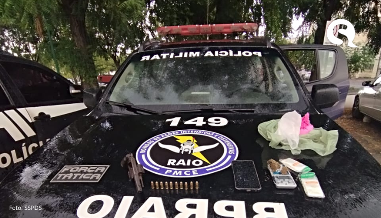 A Polícia Militar do Ceará (PMCE) realizou, na tarde desse domingo (16), a prisão em flagrante de um homem suspeito de envolvimento com o tráfico ilícito de drogas na cidade de Forquilha, que pertence à Área Integrada de Segurança 14 (AIS 14) do Estado. Com o suspeito, os policiais apreenderam uma arma de fogo, munições e quantidades de drogas.