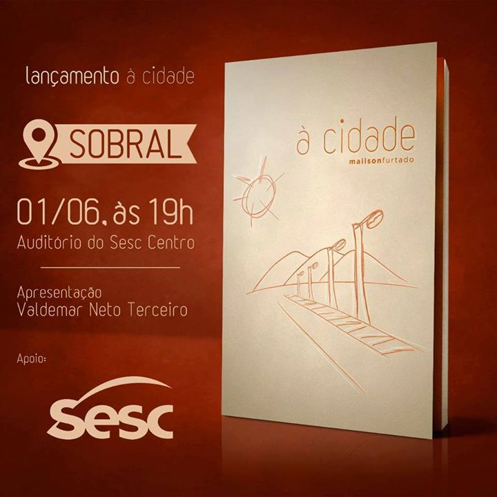 O livro “à Cidade” é o 3º livro poético de Mailson Furtado, que contará com a apresentação do poeta Valdemar Neto Terceiro, dentro do Projeto Bazar das Letras do Sesc, na noite de 1º de junho no auditório do Sesc Centro.