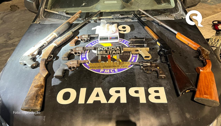 Os policiais militares do CPRAIO receberam informações de que um grupo suspeito teria promovido um ataque contra grupo criminoso rival no distrito de Taperuaba. De posse de vídeos e possível localização dos suspeitos, as equipes foram até o distrito de Aracatiaçu, onde foram recebidos por disparos de arma de fogo. O grupo se evadiu por um matagal e após buscas, um suspeito foi localizado no alpendre de uma casa. Indagado pelos policiais, o homem relatou estar de posse de duas armas de fogo e também informou a localização de mais sete armas de fogo, escondidas em uma outra residência. Na ação, foram apreendidos quatro revólveres, quatro espingardas e uma pistola, além de 48 munições intactas e sete picotadas.