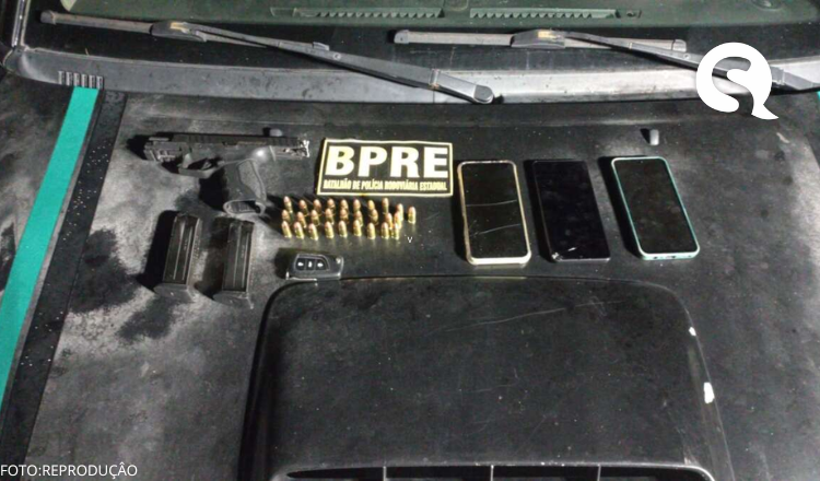 A composição se deslocava pela rodovia CE-010, quando visualizou um automóvel com dois ocupantes em atitude suspeita. Durante a abordagem e busca no interior do veículo, os policiais encontraram, embaixo do banco do condutor, a pistola, as munições e os carregadores.