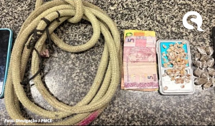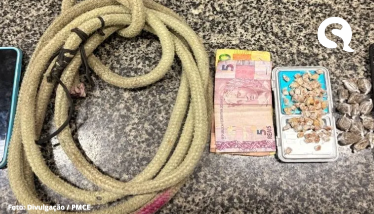 Com apoio do Comando Tático Motorizado (Cotam), os policiais realizaram cerco ao imóvel e prenderam o suspeito, de 21 anos, que havia sido apontado pela vítima. Na residência, ainda foram apreendidos: uma balança de precisão, dois celulares, uma corda, R$ 35, além de 8g de maconha e 8g de crack.