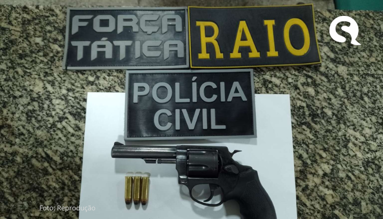 Após o registro de disparos de arma de fogo em uma via pública do município, equipes de policiais civis e militares iniciaram as diligências que resultaram na identificação de um homem que havia praticado um crime de tentativa de homicídio. Com as buscas, o homem foi localizado no interior de uma residência e, com ele, foi apreendido um revólver calibre 38 com três munições do mesmo calibre.