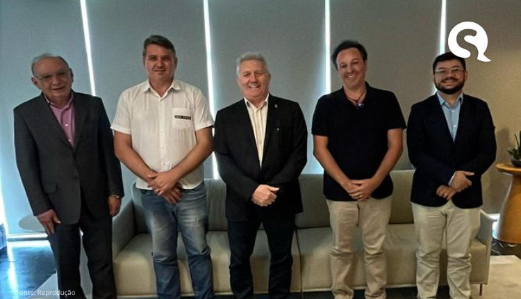 O prefeito de Sobral, Oscar Rodrigues, recebeu nesta quarta-feira (02/04) representantes da Democrata Calçados para discutir a expansão da unidade da indústria na cidade. O encontro contou com a presença do diretor executivo da empresa, Samuel Pimenta, e do gerente de produção, Fernando Zucatti, que apresentaram planos de crescimento e geração de empregos para os sobralenses.