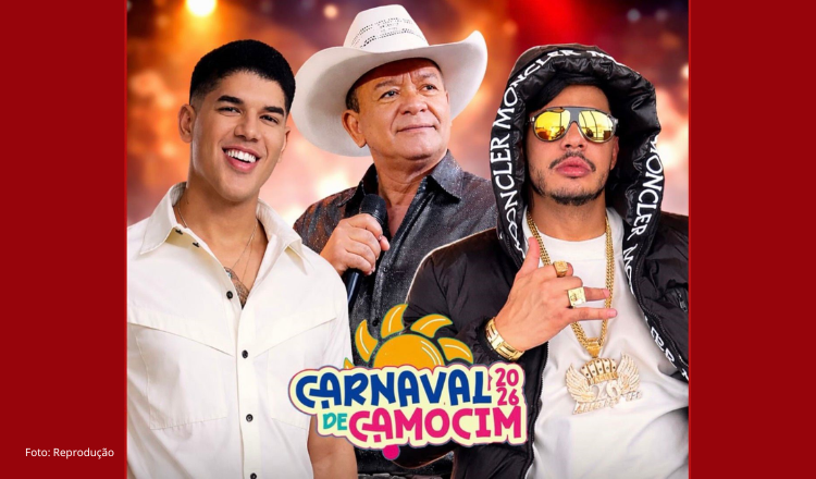 A Prefeitura de Camocim anunciou o line-up oficial do Carnaval 2026, que promete movimentar a cidade entre os dias 14 e 17 de fevereiro. Considerado um dos eventos mais aguardados da região, o festejo reunirá grandes nomes da música nacional em quatro dias de programação gratuita na orla do município.