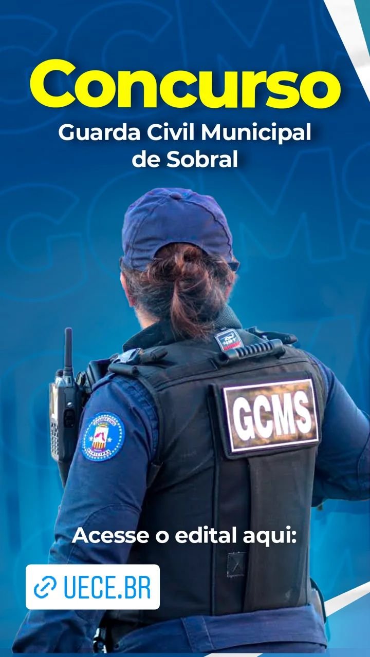 A Prefeitura de Sobral lança, nesta quarta-feira (15/12), o edital para o concurso público da Guarda Civil Municipal de Sobral, no Ceará. São 33 vagas imediatas, sendo 31 para ampla disputa e duas para Pessoas com Deficiência (PCD), além do cadastro de reserva, totalizando 100 vagas. Os candidatos precisam ter nível médio, idade entre 18 e 35 anos completos na data de inscrição do concurso, altura mínima de 1,62m para homens e 1,55m para mulheres, entre outros requisitos. A remuneração inicial é R$ 2.266,59, podendo acrescentar outras vantagens inerentes ao desempenho da função.