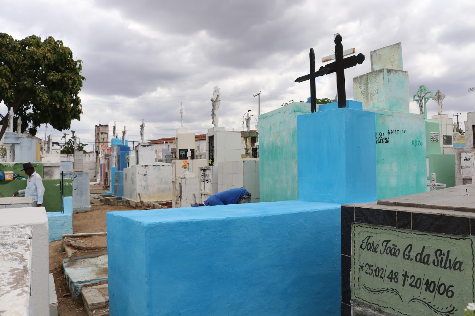 Os 33 cemitérios públicos de Sobral estão recebendo serviços de requalificação que, além da poda e retirada de entulhos, contou ainda com nova pintura nas paredes. A ação, que visa garantir ambientes mais limpos e confortáveis para o dia de finados, nesta quarta-feira, dia 2, é uma iniciativa da Prefeitura de Sobral, através da Secretaria de Conservação e Serviços Públicos (Seconv).