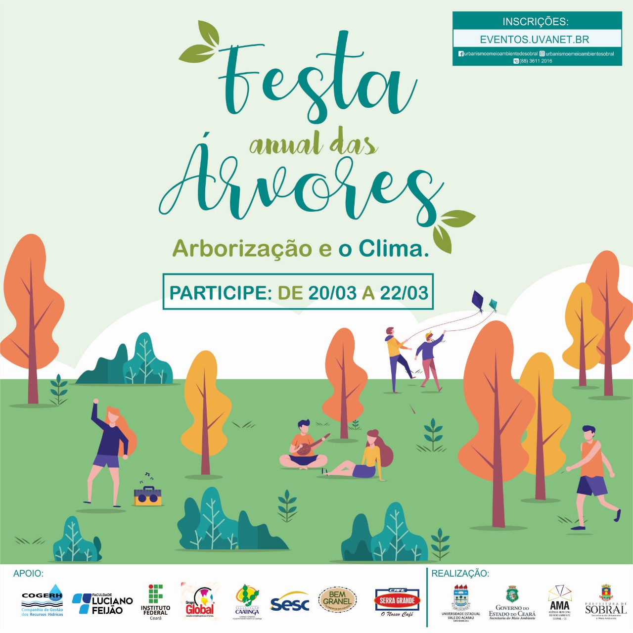 A Prefeitura de Sobral, por meio da Secretaria do Urbanismo e Meio Ambiente (Seuma) e Agência Municipal do Meio Ambiente (AMA), realiza, de 20 a 22 de março, a Festa Anual das Árvores. O evento tem como objetivo sensibilizar sobre a conservação e divulgar a importância das árvores.