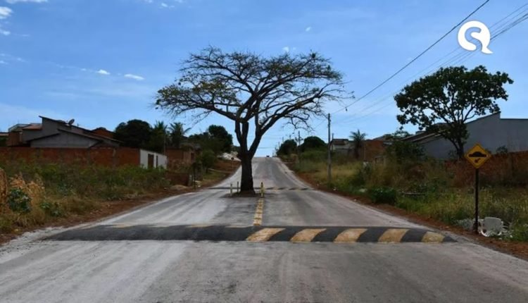 Prefeitura decide não derrubar pé de cajá no meio de avenida e coloca quebra-molas para ‘evitar acidentes’