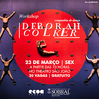 Por ocasião da passagem da Companhia de Dança Deborah Colker para exibição do espetáculo “Cão Sem Plumas” na próxima sexta-feira, as 20h, no Boulevard do Arco , a Companhia irá oferece gratuitamente um Workshop que acontecerá também na sexta-feira, às 10 horas da manhã, no Theatro São João. Será um grande oportunidade para intercâmbio cultural e troca de experiências entre bailarinos, coreógrafos e produtores da linguagem da dança. As vagas são limitadas.