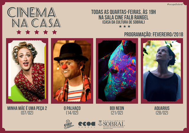 A Prefeitura de Sobral, por meio da Secretaria da Cultura, Juventude, Esporte e Lazer (Secjel) e da Escola de Cultura, Comunicação, Ofícios e Artes (Ecoa), lança a programação mensal do Projeto “Cinema na Casa”. Uma proposta voltada a estimular a fruição e difusão de produções cinematográficas nacionais através da ocupação da Sala de Cinema Falb Rangel na Casa da Cultura e de outros espaços públicos.