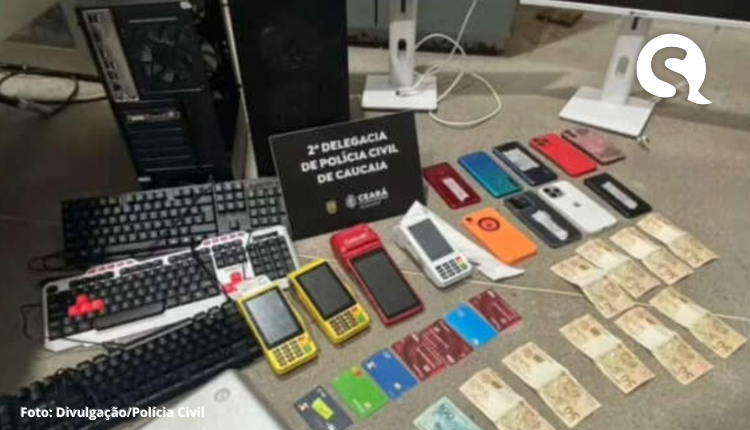 Um grupo criminoso suspeito de aplicar fraudes virtuais contra instituições financeiras foi desarticulado pela Polícia Civil em operação realizada na última segunda-feira (8), em Caucaia, na Região Metropolitana de Fortaleza. Quatro pessoas foram presas em flagrante. Conforme levantamentos realizados pela Inteligência policial, o grupo comprava contas e cartões de crédito em nome de terceiros, utilizados em transações fraudulentas, além da movimentar valores por meio de transferências via Pix. Durante as investigações, um homem de 30 anos, que já responde por homicídio; um homem de 26 anos, com antecedentes por atos infracionais previstos no Estatuto da Criança e do Adolescente (ECA); além de uma mulher de 28 anos e um homem de 29 anos, foram identificados.
