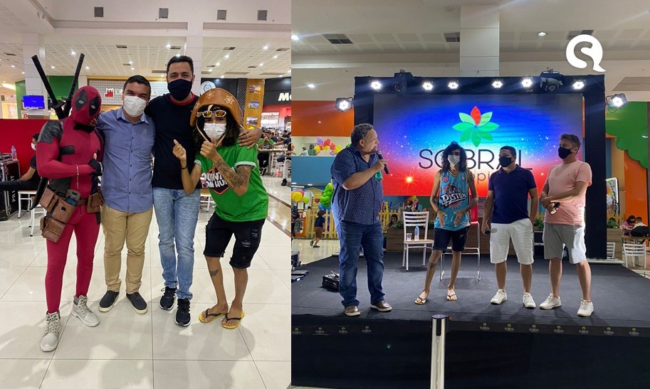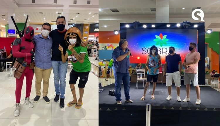 A gerente geral do Sobral Shopping, Márcia Oliveira, comemorou com o humorista Lailtinho Brega o sucesso da primeira noite do projeto Quintou com Humor, que levou para a praça de alimentação do shopping nesta quinta-feira (9), um grande número de espectadores, que respeitando as medidas de isolamento social determinadas pelos decretos, estadual e municipal, curtiram a apresentação com muitas risadas e alegria.