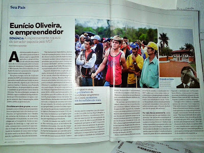 Na edição deste final de semana, a revista Carta Capital traz uma ampla reportagem de duas páginas, na qual mostra as negociações para desocupação da Fazenda Santa Mônica, de propriedade do senador e candidato da Coligação Ceará de Todos ao Governo do Estado, Eunício Oliveira (PMDB), e as articulações do MST (Movimento dos Trabalhadores Rurais Sem Terra) para a propriedade ser destinada à reforma agrária.