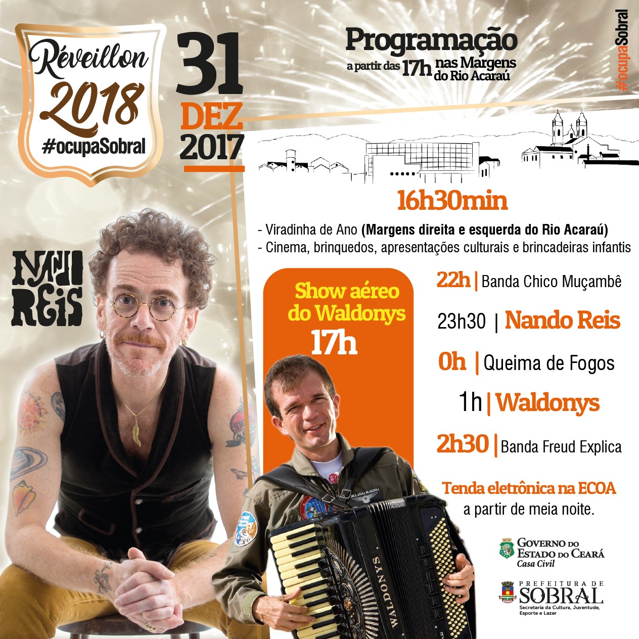 A Prefeitura de Sobral deve promover o melhor Réveillon do interior do Ceará. O cantor e compositor Nando Reis comandará o show da virada de ano, que contará ainda com a participação do sanfoneiro Waldonnys, Banda Chico Muçambê e o brega-roque do Freud Explica.