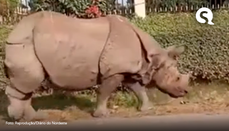 Rinoceronte é flagrado acordando cachorro em rua do Nepal; veja vídeo