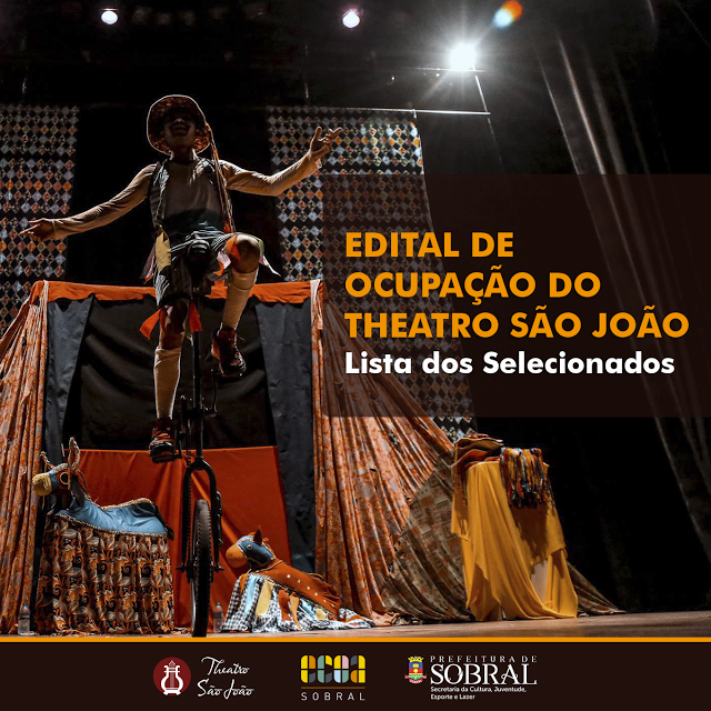 Com o objetivo de selecionar projetos artísticos apresentados por grupos locais, regionais e nacionais, a Prefeitura de Sobral, por meio da Secretaria da Cultura, Juventude, Esporte e Lazer (SECJEL) e Instituto Escola de Cultura, Comunicação, Ofícios e Artes (ECOA) lançou, na última quinta-feira (23/08), o resultado do edital de ocupação do espaço do Theatro São João.