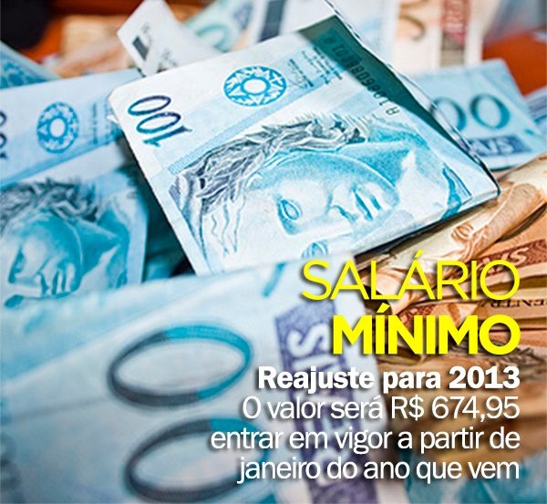 Salário mínimo previsto para 2013 será aumentado em 4 reais em relação a expectativa passada: R$ 674,95.