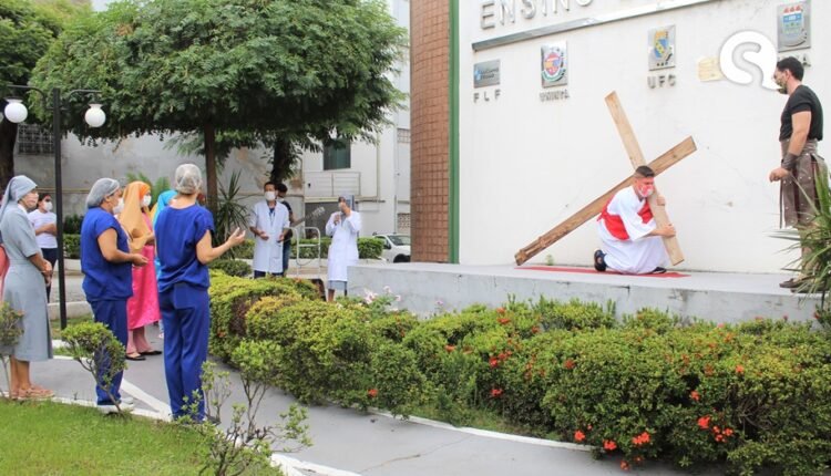 A Santa Casa de Misericórdia de Sobral celebrou, na sexta-feira (26/03), a paixão e morte de Cristo. Respeitando as medidas de segurança em combate à Covid-19, o espetáculo religioso, conduzido pelo diretor espiritual da Santa Casa, Pe. Jairo Linhares, e interpretado pelos funcionários do hospital, realizou uma caminhada aos espaços abertos dos serviços.