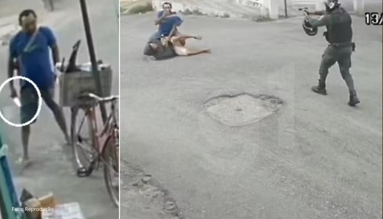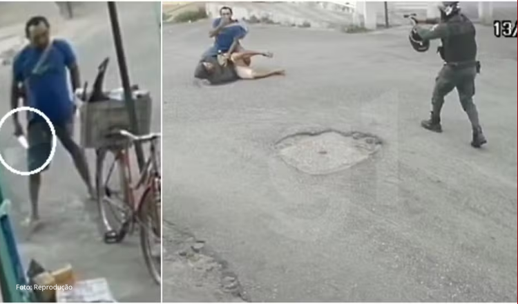Um sargento da Polícia Militar salvou um homem que estava sendo esfaqueado e prendeu o agressor em Canindé, no interior do Ceará, na manhã deste sábado (13). A ação foi registrada por uma câmera de segurança.