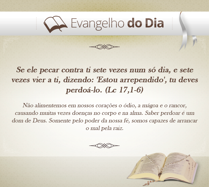Notícias Se ele pecar contra ti sete vezes num só dia, e sete vezes vier a ti, dizendo: 'Estou arrependido', tu deves perdoá-lo. (Lc 17,1-6) On 10 nov 2014 Compartilhar
