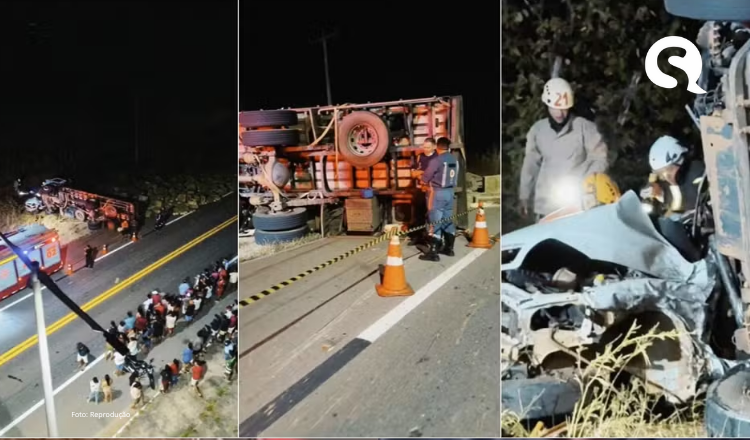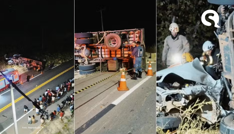O veículo de passeio colidiu de frente com um caminhão que se deslocava no sentido oposto. O caminhão tombou para fora da via, conforme informações iniciais repassadas pelo Corpo de Bombeiros do Estado do Ceará.