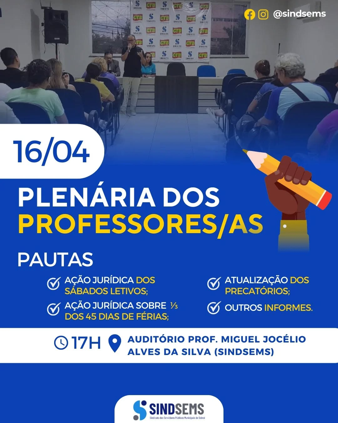 O Sindsems convocou os professores da rede municipal de Sobral para uma reunião considerada crucial para o futuro da categoria.