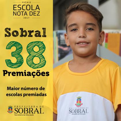 Destaque nacional em educação, Sobral continua acumulando bons resultados nas avaliações estaduais. As escolas municipais de Sobral conquistaram 38 premiações no Prêmio Escola Nota 10, do Programa de Aprendizagem na Idade Certa (MAIS PAIC), o maior número da história do município e do Estado do Ceará. A cerimônia de entrega do prêmio acontecerá nesta quinta-feira (17/05), às 08 horas, no Centro de Eventos do Ceará, em Fortaleza.