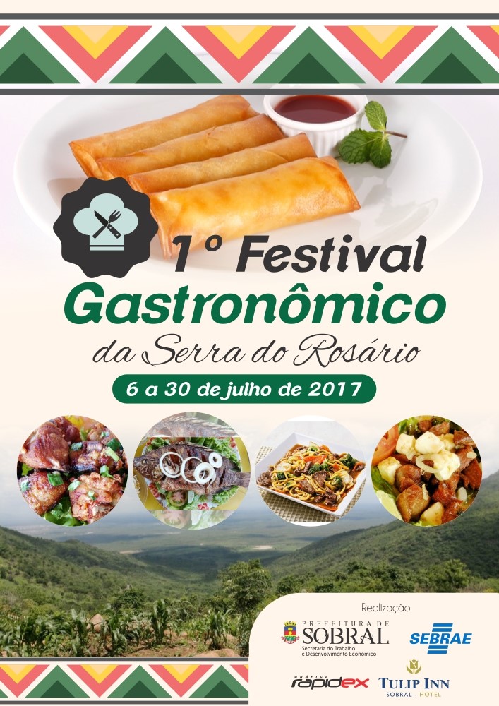 Visando desenvolver o potencial turístico e econômico do distrito do Jordão, tendo como base a cultura e as tradições gastronômicas, a Prefeitura de Sobral, por meio da Secretaria do Trabalho e Desenvolvimento Econômico (STDE), juntamente com a comunidade da Serra do Rosário – Jordão, realizarão durante o mês julho, do dia 06 a 30, o 1º Festival Gastronômico. O Festival conta com a parceria do Sebrae, Gráfica Rapidex e Hotel Tulip Inn.