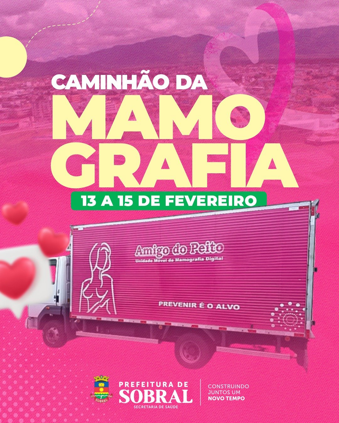 Além disso, entre os dias 11 e 15 de fevereiro, o caminhão Amigos do Peito estará em Sobral para a realização de exames gratuitos, beneficiando mulheres que realizaram agendamento prévio nos Centros de Saúde da Família (CSF). A iniciativa visa ampliar o acesso ao diagnóstico precoce e reforçar a importância do rastreamento do câncer de mama.