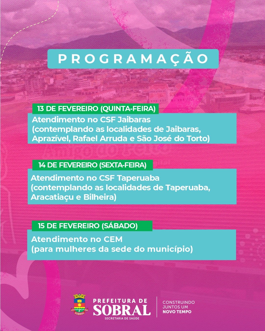 📍 Dia 15/02 (sábado) – Atendimento no CEM, para mulheres da sede do município.