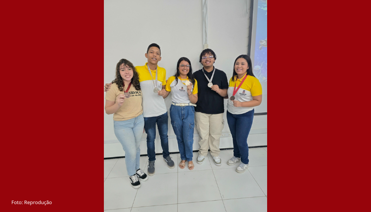 Medalhas de Bronze: Pedro Yury da Silva Garcia, Ana Íris Oliveira Soares e Mayelle Vitória Souza Silva, todos da Escola de Tempo Integral Maria Dorilene.