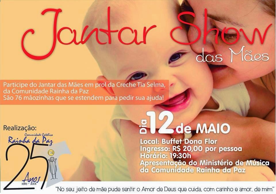 Notícias #Solidariedade | Jantar Show da Mães em prol da Creche Tia Silma On 05 maio 2014 Clique na imagem para ampliar Compartilhar