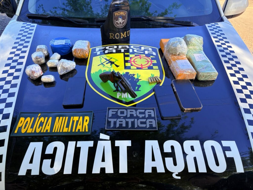 Durante a abordagem, foram apreendidos aproximadamente 3,1 kg de entorpecentes, incluindo maconha, cocaína e crack, além de um revólver calibre .38, cinco munições e três aparelhos celulares na residência do suspeito.