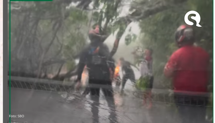 A árvore caiu em meio a fortes chuvas na região, por volta das 13 horas. Imagens divulgadas nas redes sociais mostram uma movimentação de pessoas com ferramentas para quebrar os galhos e liberar a passagem. Devido ao tamanho das ramificações, as duas vias aparecem obstruídas no vídeo.