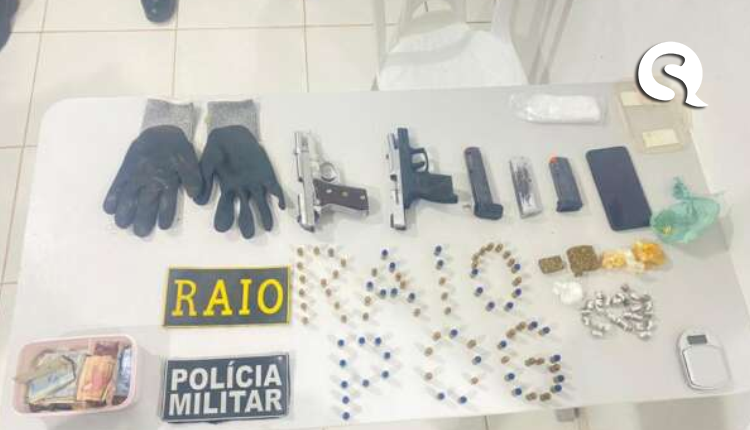 Trio de suspeitos é preso com armas, munições e drogas em Chaval