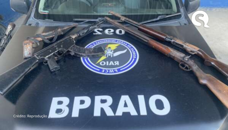Após receberem denúncias de populares sobre indivíduos que estariam aterrorizando os moradores e escondidos naquela localidade, de imediato, os PMs saíram em diligência em busca dos suspeitos. No local indicado, a patrulha avistou o trio, momento em que duas mulheres e um adolescente correram em direção a uma mata fechada. Com eles, foram apreendidas duas espingardas cal. 12, uma delas com a numeração suprimida; uma carabina cal. 9mm e arma artesanal, ambas sem numeração. Na ação, também foram apreendidas 19 munições cal. 9mm e uma motocicleta.