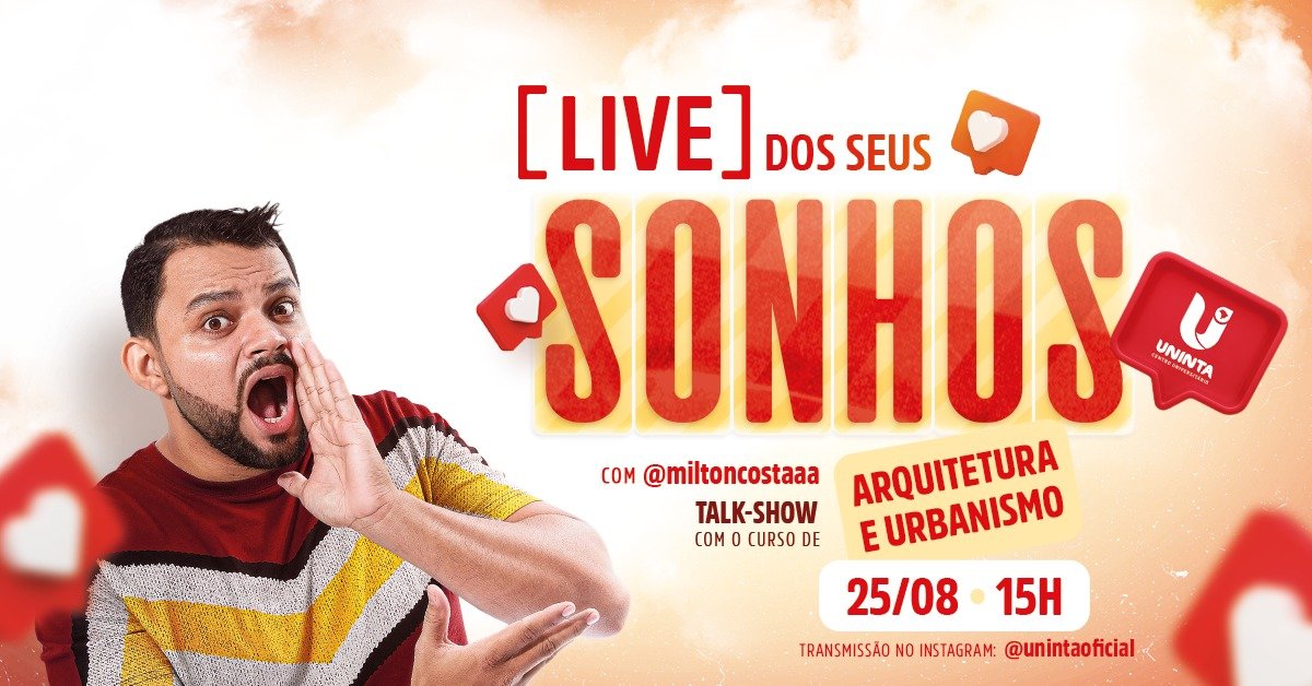 Nesta quarta-feira (25), o Centro Universitário Inta (UNINTA) dará início a uma série de programas ao vivo, a Live dos seus Sonhos, que irá apresentar as carreiras disponíveis na instituição. No formato talk show, a primeira live abordará o curso de Arquitetura e Urbanismo e será transmitida no instagram @unintaoficial, às 15h.