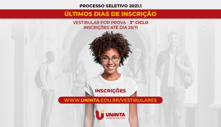 O período de inscrições para o 3º Ciclo do Processo Seletivo Tradicional (ingresso por prova) do Centro Universitário Inta (UNINTA) já se encontra nas últimas semanas. As inscrições estão disponíveis até o dia 29 de novembro. A instituição oferece 840 vagas para os mais de 20 cursos presenciais.