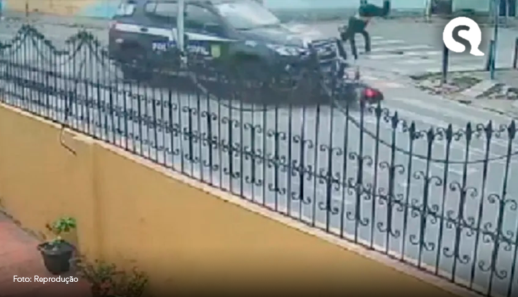 Câmeras de segurança registraram o momento em que uma viatura da Polícia Civil atropelou um motociclista de 32 anos. O acidente ocorreu no cruzamento da Rua Alberto Magno com a Rua Professor Costa Mendes, no Bairro Montese, em Fortaleza, na manhã de domingo (20).