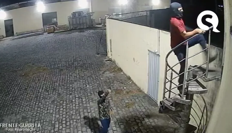 Imagens do circuito de segurança da empresa mostram o momento da invasão. No vídeo, é possível ver os suspeitos correndo e apontando para a guarita do vigilante, empunhando armas de fogo. Quando um deles sobe a escada, a reação acontece. O vigilante, então, consegue balear os três.